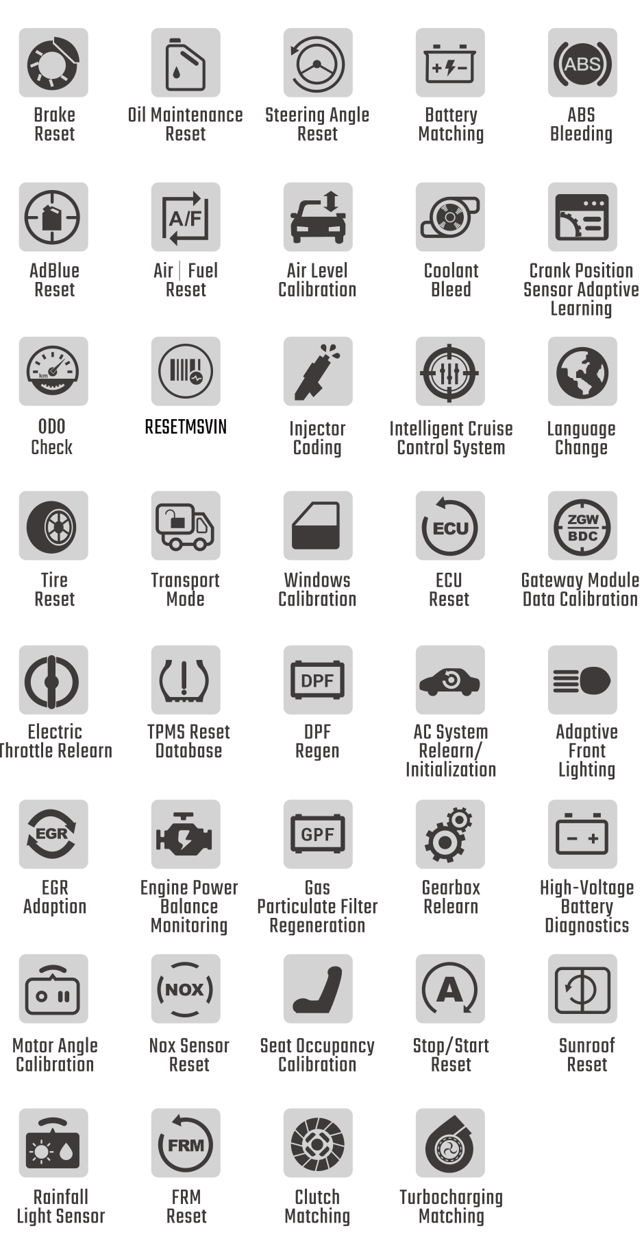It is a fully equipped bi-directional control, reading and clearing fault codes, live data and activations, and more special and maintenance functions than any comparable tool on the market.
