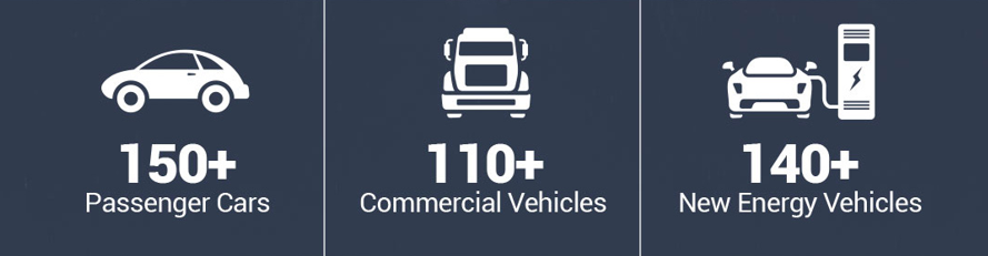 - Full system vehicle coverage for U.S., Asian and European markets: 150+ passenger cars, 110+ commercial vehicles(optional), and 140+ new energy vehicles(optional), which is continuously getting updated.